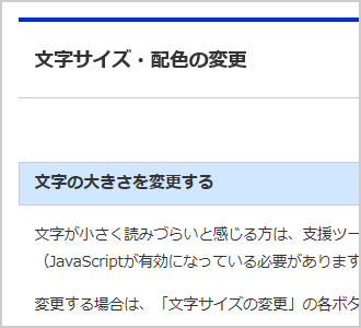 文字が小さく読みづらいと感じる方は、支援ツールを利用せずに文字のサイズを変更することができます。(JavaScriptが有効になっている必要があります。)